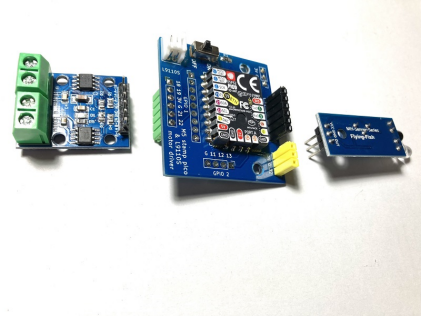 モータードライバーはLS9110Sという安いチップがあるのですが、モジュール化されたものを買うとチップから作るより全然安いので利用することにします。LM393の赤外線障害物センサーモジュールも同様で、例によって無数のクローン品がAliexpressなどで大量に売られています。