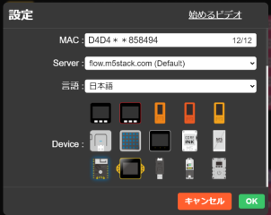 M5Stamp picoは1個ごとにユニークなMACアドレスが振られていて、製品にシールが貼ってあるので、このMACアドレスをUIflowに入力することで、双方が接続される仕組みです。
