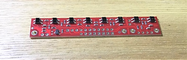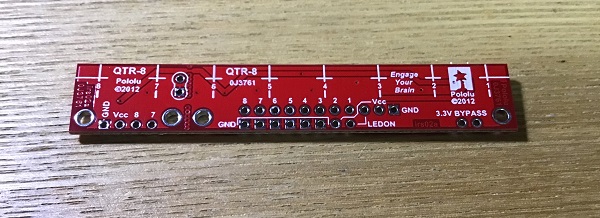 今回は「Pololu QTR-8A」という1モジュールに光反射センサーが8個並んでいる製品がありましたので、これを利用しました。