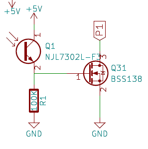 仕方がないのでLEDの点滅という光学的な情報を利用することにします。LED1つずつにフォトトランジスタを取り付けて、点滅の情報を電気信号に変換し、その情報で外部のLEDを点滅するという回りくどい方法ですが。LEDの点滅スイッチにはFETを使用します。