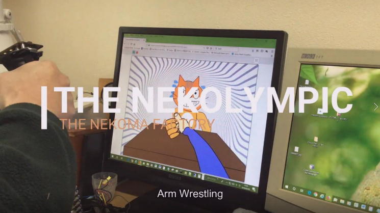 Micro:bit Educational Foundation CEO,trying the Nekoiympic. |
