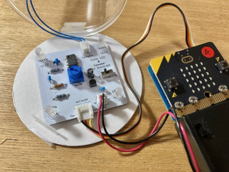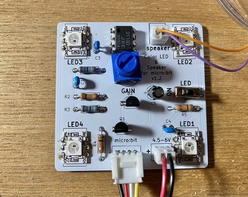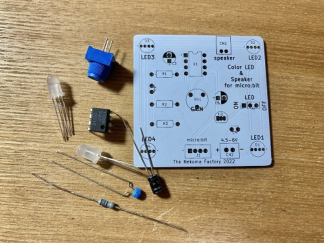 また、micro:bitV2になって、サウンドの機能が強化されたので、ランタンから光と音が同時に出せると一層楽しそうです。micro:bitV2には一応内蔵スピーカーがついていますが、小さな圧電サウンダーなので出せる音量・音質には限度があります。