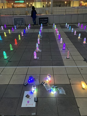 micro:bitを使うワークショップのキラーコンテンツの一つが、マイコン内蔵LED(通称ネオピク、NeopixelはAdafruitの商標です)を使った、くるくる色の変わるランタンです。プログラムでLED1個ずつの色をコントロールできるものですが、子どもは光り物が好きなので、この手のワークショップは好評なものが多いです。