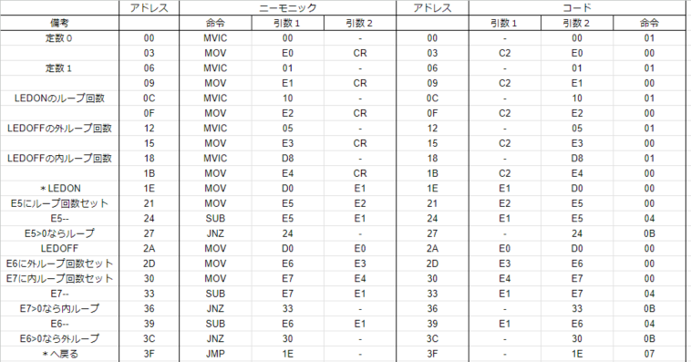 CPUがアドレスD0に01を書き込むとソレノイドがON、00を書き込むとOFFになるので、ループで時間稼ぎをして、60秒に1回ソレノイドがONになるようなプログラムにしています。