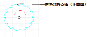 そこで、サーボに上図のような歯車を取り付けることにしました。歯の間に弾力性のある棒が入るようにします。